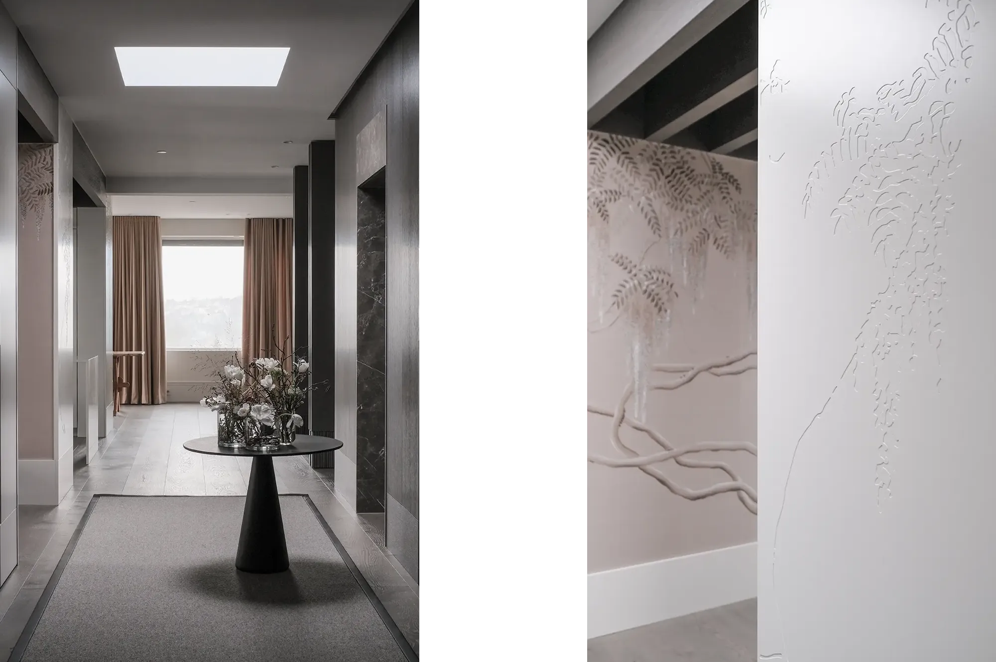 I also placed great emphasis on creating an atmosphere that would make the residents feel connected to and touched by the architecture. Natural light and shadows now play a vital role in creating a dynamic and atmospheric ambiance. I chose a color and material palette in warm tones and used natural materials such as wood and stone to establish a calm and timeless foundation. Floral elements were also introduced through wallpapers and carvings to bring in elegant hints of the plants on the terrace. I was dedicated to creating both functional and aesthetic details to provide a holistic experience that resonated with my clients' hearts.