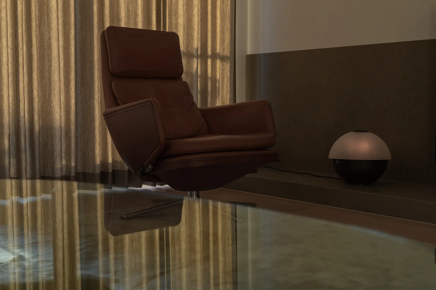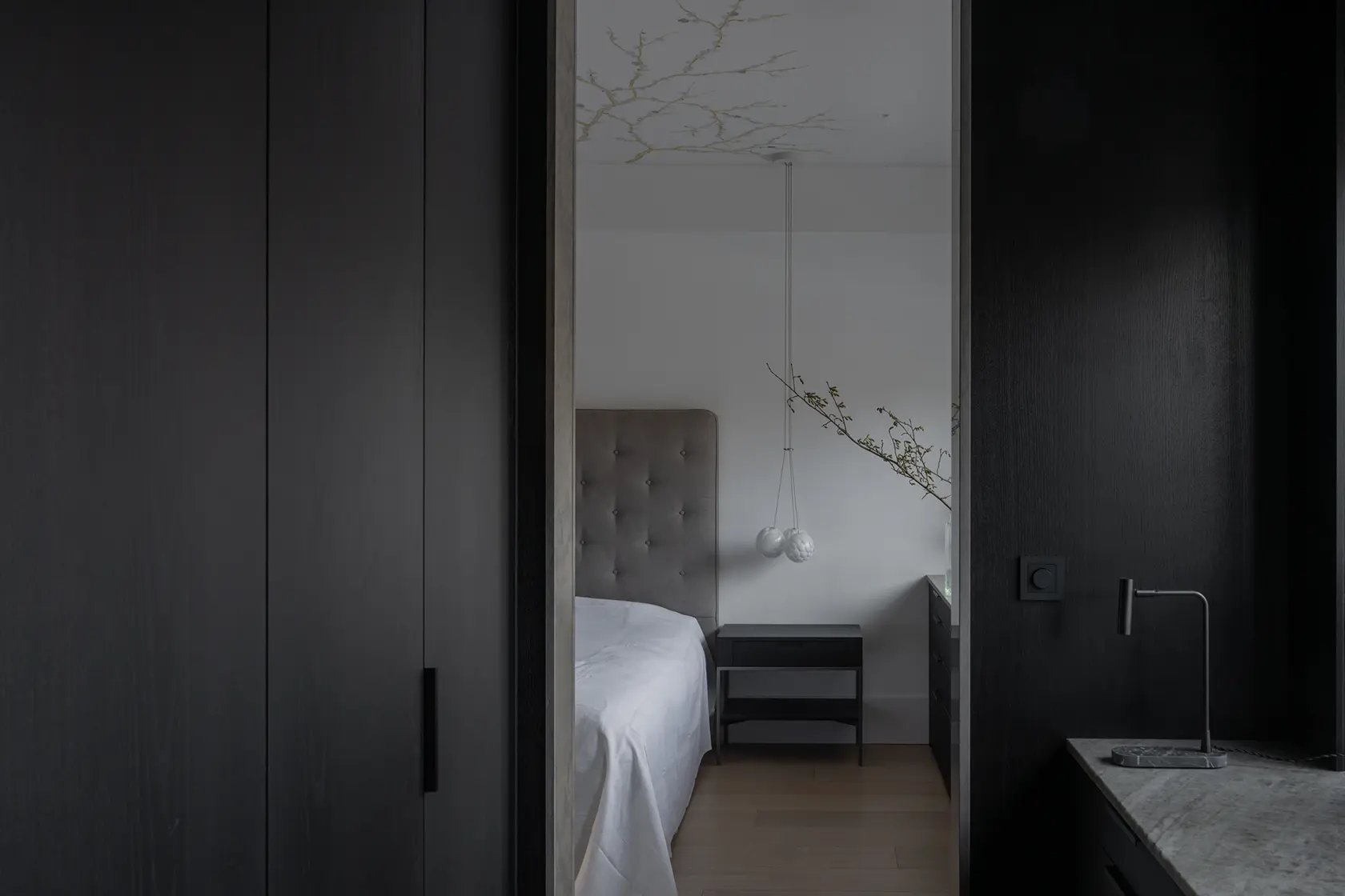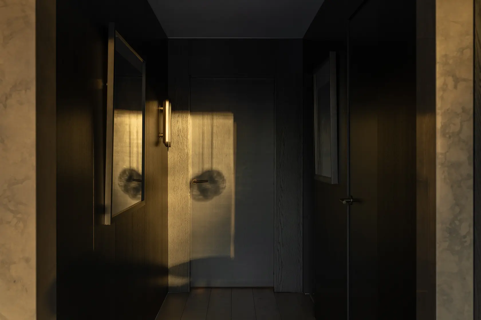 Atmosfæren i hjemmet balanserer presisjon og varme – en harmoni av ro og detaljer. Sammensmeltningen av kontraster og materialer, kunst og komfort, danner et design som føles uanstrengt og komplett. Dette er et hjem hvor byen stopper ved døren og stillhet og skjønnhet setter melodien.