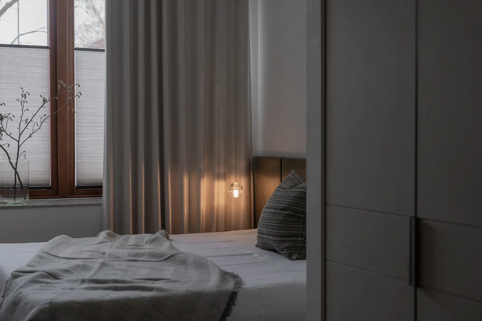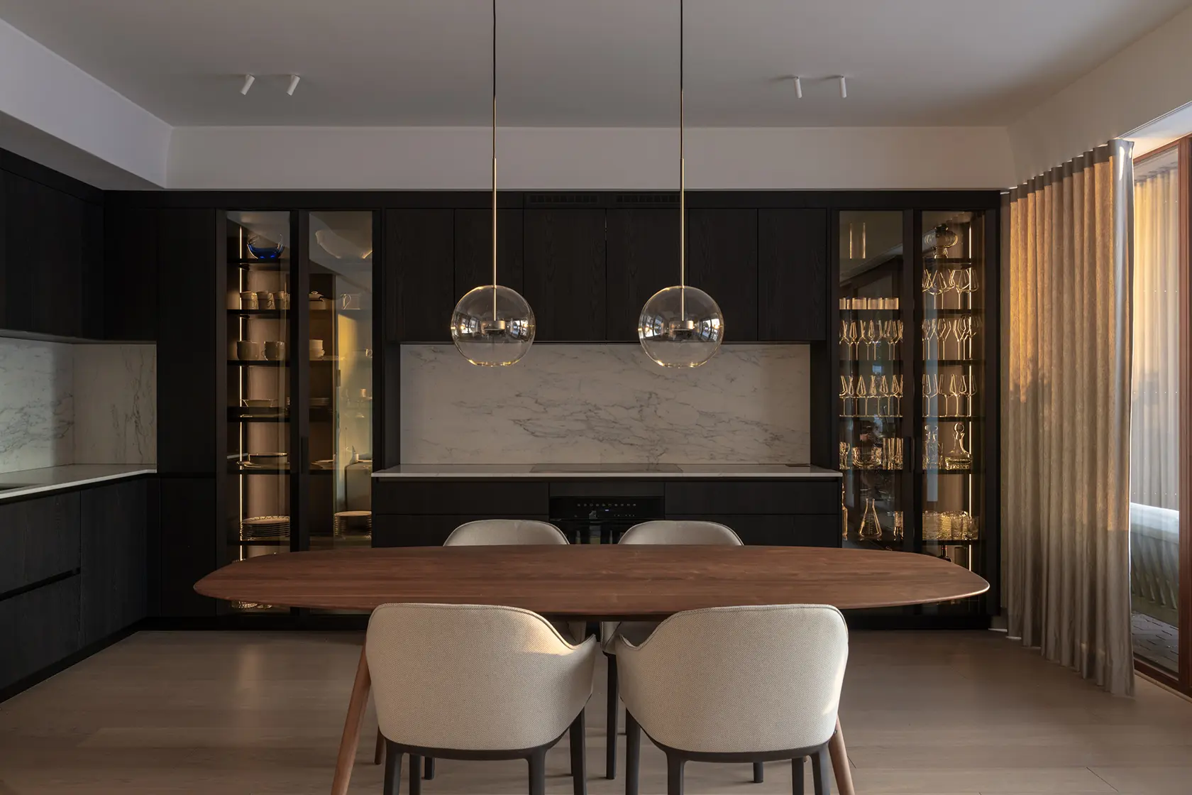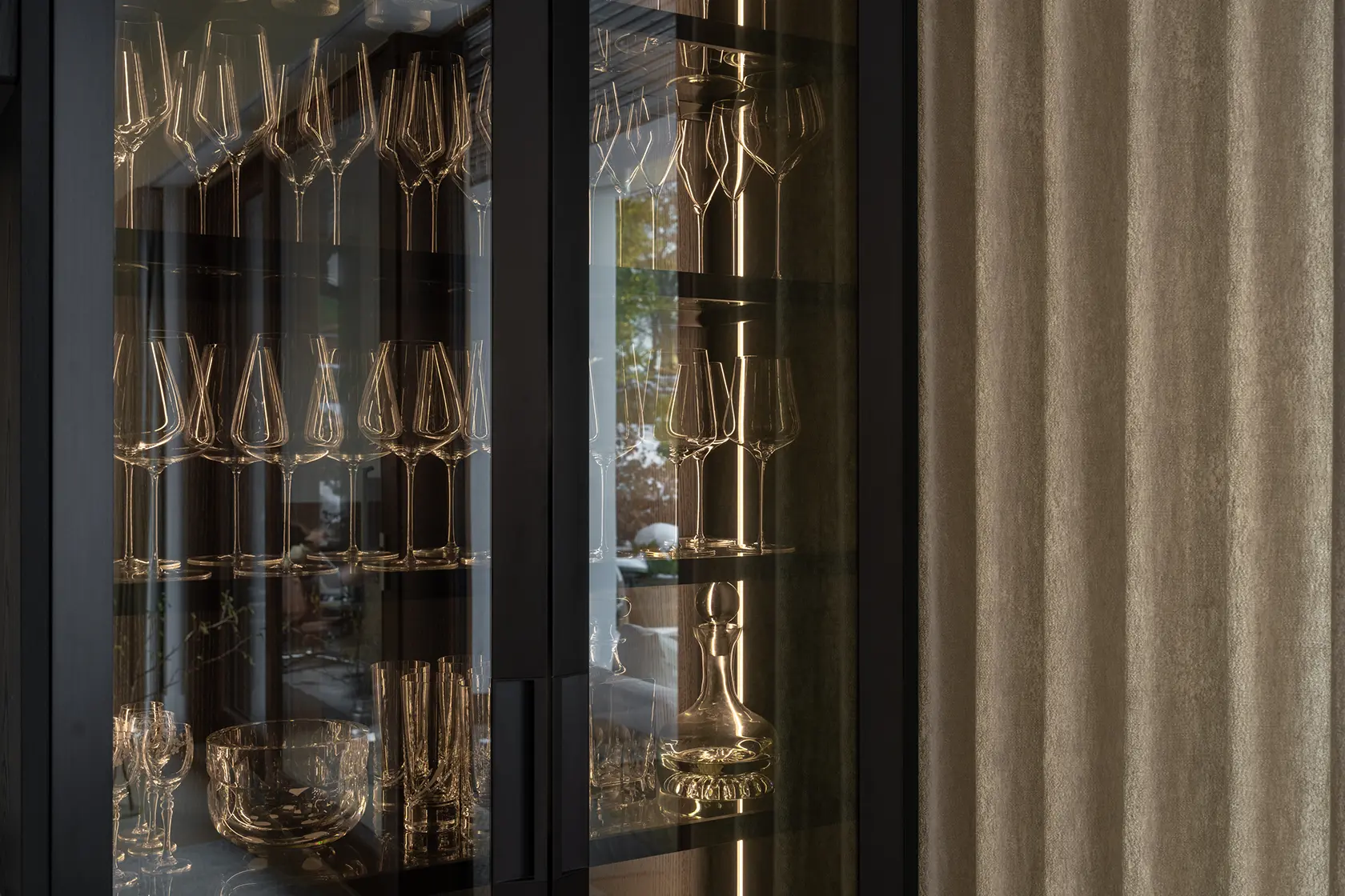 Atmosfæren i hjemmet balanserer presisjon og varme – en harmoni av ro og detaljer. Sammensmeltningen av kontraster og materialer, kunst og komfort, danner et design som føles uanstrengt og komplett. Dette er et hjem hvor byen stopper ved døren og stillhet og skjønnhet setter melodien.