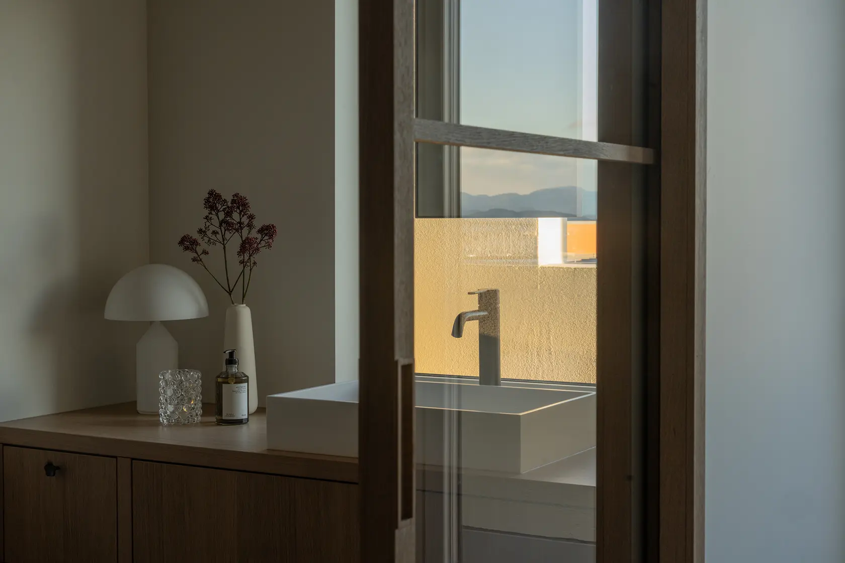 Skjønnhet har vært et overordnet premiss, hentet fra naturen rundt leiligheten og kysten, og bearbeidet gjennom romlige sammenhenger, materialvalg og lys.